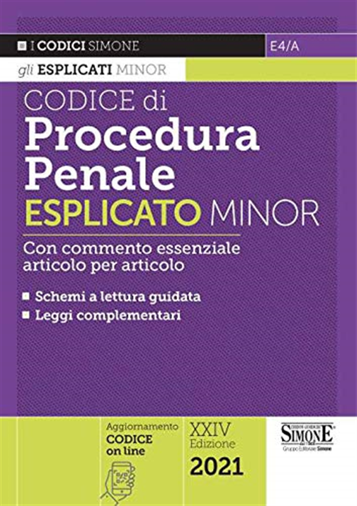 La collana dei codici Esplicati Minor costituisce un ulteriore strumento di studio e/o lavoro per quanti abbiano la necessità di consultare rapidamente un testo codicistico corredato da un agile commento esplicativo. In calce agli articoli del codice, infatti, sono riportate brevi annotazioni esplicative che facilitano la lettura delle singole norme guidando il lettore verso una immediata comprensione dello spirito e della lettera di ciascuna disposizione. A tal fine, inoltre, sono riportati in appendice una serie di Schemi a lettura guidata, sui principali argomenti e istituti: in particolare, a fronte di ogni schema, vengono presentate le definizioni delle «parole-chiave» in esso contenute. Il volume risulta particolarmente utile sia in affianco ai tradizionali testi di studio sia per una rapida consultazione della normativa che grazie al formato pratico e maneggevole può essere d’ausilio anche nelle aule giudiziarie. A corredo del testo codicistico, infine, si riportano le disposizioni normative relative alla Competenza penale del Giudice di pace, al Processo penale a carico di imputati minorenni e al Mandato di arresto europeo. Un ampio corredo di indici: sistematico, analitico-alfabetico e cronologico completa il volume e facilita la ricerca del dato normativo.