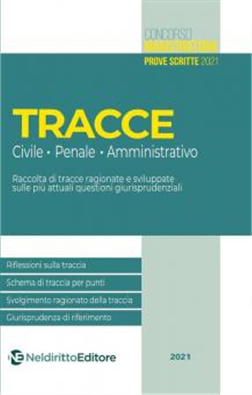 L'opera si rivolge primariamente all'aspirante magistrato, in vista delle imminenti prove scritte del concorso a 330 posti (D.M. 29 ottobre 2019), e propone per ogni materia dieci temi svolti relativi a questioni di stringente attualità giurisprudenziale, privilegiando quelle che, per la loro settorialità, sfuggono ad una esauriente trattazione manualistica. A ciascun elaborato sono premesse alcune riflessioni relative alla traccia, che permettono di metterne in luce l'oggetto, la sua rilevanza sistemativa, gli aspetti maggiormente problematici e le possibili insidie, oltre ad un preliminare schema di svolgimento per punti. Lo svolgimento della traccia è poi condotto in modo ordinato e ragionato, sempre partendo da un inquadramento generale del problema, per poi giungere alle questioni più specificche e alla giurisprudenza rilevante.