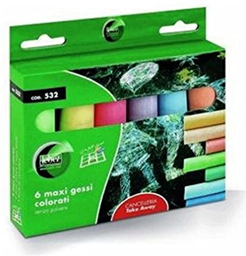 6 maxi gessi colorati - diametro 20mm - senza polvere - lunga durata - facili da cancellare.