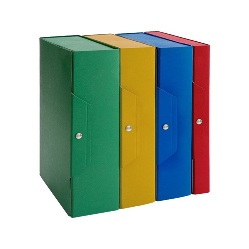 Cartella portaprogetti realizzata in presspan. Chiusura interna ed esterna con bottoni automatici. Le Scatole archivio cartone, utilizzabili come faldoni per ufficio, sono adatte a contenere documentazione e piccoli oggetti come campioni o prototipi, consentendo di raggruppare tutto il materiale riguardante un progetto. Sono disponibili in quattro colori con sei differenti dorsi per adattarsi alle diverse necessità di archivio. Formato 25x35 cm.