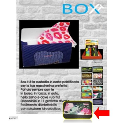 Box è la custodia in carta plastificata per la tua mascherina preferita! Portalo sempre con te in borsa, in tasca, in auto, nello zaino e dove vuoi tu!