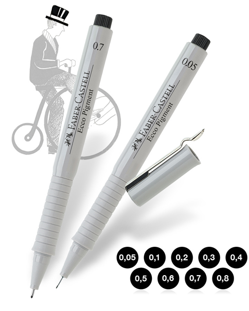 Penne Ecco Pigment ad inchiostro pigmentato nero. Adatte per il disegno tecnico, sono resistenti all'acqua e alla luce. Impugnatura ergonomica antiscivolo. Disponibili con diversi tratti.