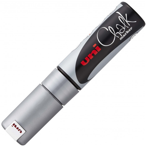 Marker Uni-Clack PWE-8K - a gesso liquido - punta a scalpello media da 8mm - argento