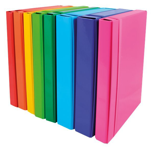 Dorso: 5 cm Chiusura: elastico a fettuccia Materiale: cartone 2 mm accoppiato a carta plastificata lucida Formato utile: 24,5x34,5 cm