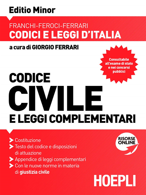 In versione tascabile una visione sintetica, ma completa del quadro normativo in ambito civile costituita dal testo vigente del Codice civile (corredato da note di aggiornamento) e dalle principali leggi complementari collegate, organizzate sistematicamente per materia. L'indice sistematico per tema e l'indice cronologico delle norme complementari, nonché il puntuale indice analitico, consentono di individuare agevolmente le leggi o gli argomenti di interesse. Per il suo formato ridotto e il suo contenuto il volume rappresenta un agevole strumento di riferimento per lo studente o di consultazione per il professionista di ambito giuridico.