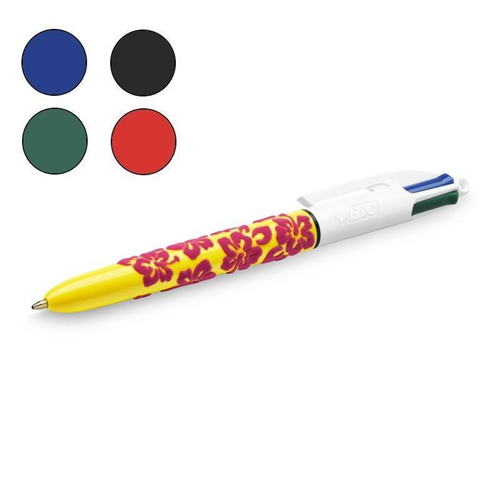 Penna Bic 4 Colours Vuours - fusto giallo - scrive: blu - nera - verde - rossa