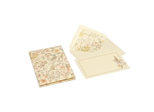 1 cartoncino cm 10,6x6,8 1 busta cm 11x7. Carta camoscio con oro in polvere.