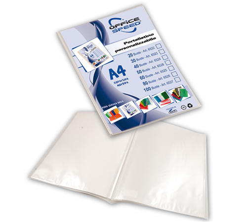 Portalistino personalizzabile formato A4, copertina morbida, trasparente, 40 fogli.