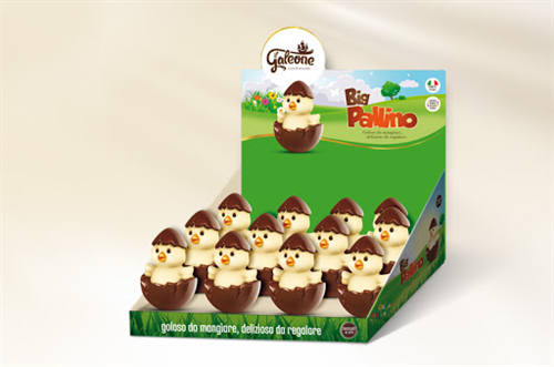 Pulcino di Puro Cioccolato al Latte Decorato a Mano gr.120. Dimensione: 14x25x17cm.