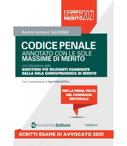 Il Codici con massime di solo merito, pensati con una struttura totalmente innovativa rispetto agli altri.Offrono infatti una raccolta delle più recenti massime di merito, fornendo il quadro del dibattito giurisprudenziale prima dell'approdo della questione in Cassazione.Si tratta quindi di uno strumento che permette a chi si accinge a partecipare all'Esame di Stato, di essere pronto a disquisire su questioni del tutto inedite, non ancora affrontate dalla giurisprudenza di legittimità.