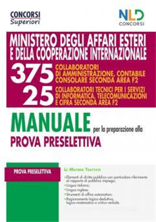 Il concorso prevede per ciascun profilo una prova preselettiva, una prova scritta ed una prova orale. La prova preselettiva consisterà, per entrambi i profili, in 60 quesiti a risposta multipla sulle seguenti materie: logica (capacità logico-deduttiva, di ragionamento logico-matematico e critico- verbale); elementi di diritto pubblico, con particolare riguardo al rapporto di pubblico impiego; lingua inglese; lingua italiana; informatica: gli strumenti di office automation; Il presente volume costituisce un valido ed efficace strumento per la preparazione alla prova preselettiva, contenendo una sintetica ma dettagliata trattazione teorica delle materie del bando (fatta eccezione per la lingua italiana, di cui è richiesta, al candidato, una buona conoscenza) con un’utilissima descrizione delle tecniche di risoluzione dei quesiti di logica, e con un’attenta selezione di quiz per ogni materia. Completa il volume il simulatore on line, con il quale è possibile esercitarsi con batterie di domande a risposta multipla su tutte le materie, consultabile con apposita password presente nel retro del volume.