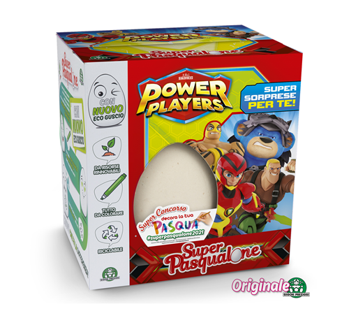 Contiene sorprese Power Players. Il guscio del Super Pasqualone è in materiale proveniente da risorse rinnovabili ed è riciclabile. Puoi anche personalizzarlo, divertendoti a decorare il guscio come vuoi tu.