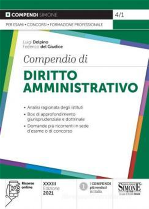 Questa nuova edizione del “Compendio di Diritto amministrativo” inquadra gli istituti principali e la disciplina tradizionale della materia e, al tempo stesso, cala, ove possibile, gli argomenti nel contesto socio-economico attuale, a riprova della estrema “dinamicità” di questa branca del diritto. La trattazione tiene conto dei più recenti provvedimenti normativi che, in maniera sempre più decisa, orientano l’azione e l’organizzazione degli uffici pubblici nella direzione della sburocratizzazione e di un’attività digitale e semplificata, ed accompagna progressivamente il lettore nello studio dei seguenti temi: fonti e organizzazione; lavoro pubblico; attività amministrativa, procedimento e provvedimento; accesso ai documenti, accesso civico e privacy; trasparenza e anticorruzione; Codice dell’amministrazione digitale; contratti pubblici; beni, espropriazione e sistema delle responsabilità; giustizia amministrativa. Lo scrupoloso aggiornamento e la chiarezza del Compendio, arricchito da box di approfondimento, questionari e schemi esplicativi, sono particolarmente indicati per esami universitari, concorsi pubblici ed operatori del settore. Altre risorse utili ad agevolare lo studio sono disponibili on line utilizzando l’apposito QR Code posto sul retro di copertina.