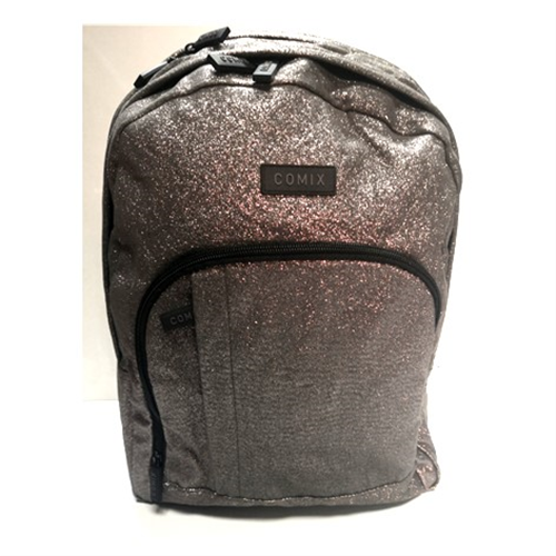 Zaino Comix Special Glitter Black – mod. organizzato. Articolo ideale per scuola e tempo libero. 3 cerniere + tascone. Molto capiente e fashion!!! Schienale imbottito e rinforzato. Schienali imbottiti e regolabili. Chiusura principale con zip e parapioggia. Tasca frontale con zip.