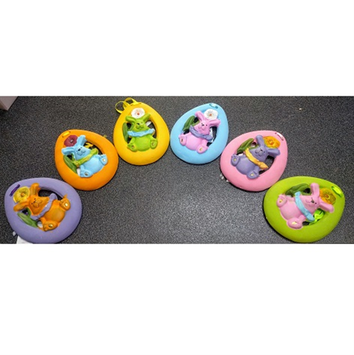 Appendino viola in ceramica a forma di uovo con coniglio arancio
