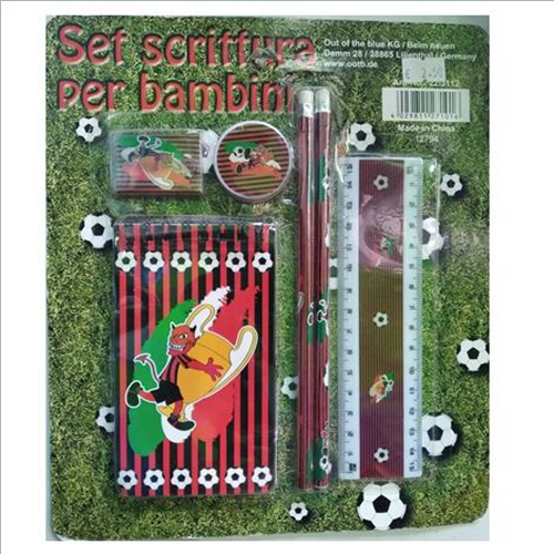 Il set contiene: note spirale, n. 2 matite con gomma, gomma, temperino, righello 15cm