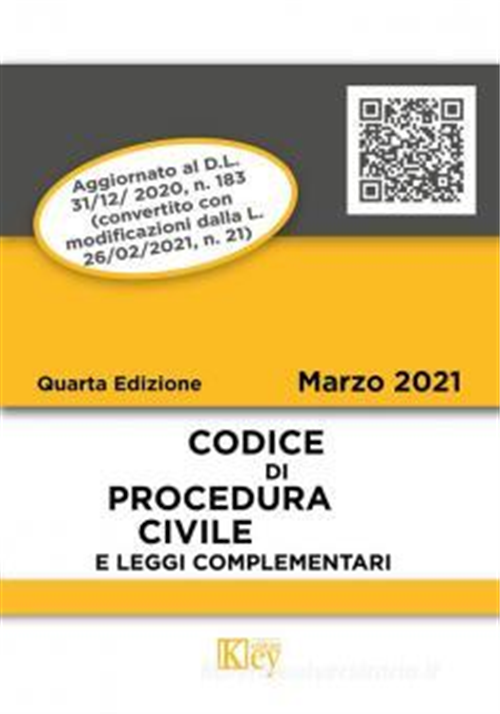 Il presente codice è frutto di anni di esperienza degli autori e permette una facile consultazione anche grazie ai numerosi richiami tra le norme. Le note risultano particolarmente approfondite anche tramite il richiamo dei precedenti testi di legge. L'impaginazione e la facile consultazione lo rendono uno strumento di particolare ausilio a chi svolge la professione di avvocato o magistrato. Il codice risulta aggiornato alle seguenti disposizioni normative: D.L. 31 dicembre 2020, n. 183, convertito con modificazioni dalla legge 26 febbraio 2021, n. 21. D.L. 17 marzo 2020 n. 18, convertito con la legge 24 aprile 2020, n. 27 L. 28 febbraio 2020, n. 8 (Legge di conversione del decreto Milleproroghe) L. 12 aprile 2019, n. 31 L. 30 dicembre 2018 n. 145 D. lgs. 13 luglio 2018, n. 116 L. 22 maggio 2017, n. 81 D.L. 3 maggio 2016, n. 59 (Convertito in legge, con modificazioni, dall' art. 1, comma 1, L. 30 giugno 2016, n. 119) D.L. 27 giugno 2015, n. 83 (Convertito in legge, con modificazioni, dall' art. 1, comma 1, L. 6 agosto 2015, n. 132).