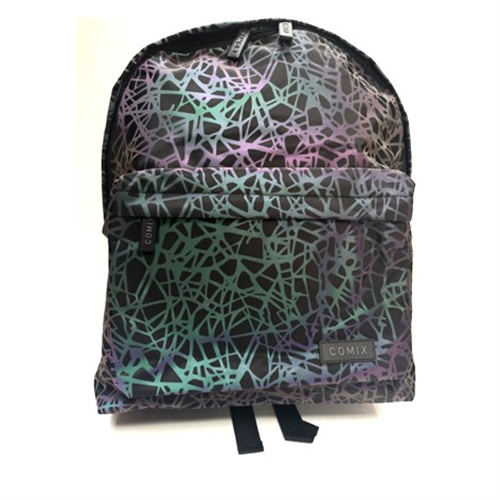 Zaino Comix Special Reflective Lines – mod. americano. Articolo ideale per scuola e tempo libero. Schienale imbottito e rinforzato. Schienali imbottiti e regolabili. Chiusura principale con zip e parapioggia. Tasca frontale con zip. Dimensioni: 30x40hx17cm. Grazie al riflesso della luce, si creano particolari effetti cangianti, che rendono il tuo zaino sempre diverso!!!