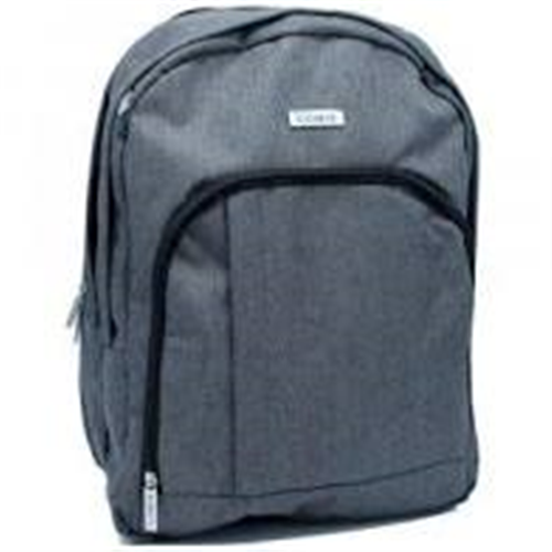 Schienale imbottito e rinforzato. Spallacci imbottiti e regolabili con retro antiscivolo. Chiusura principale con zip e parapioggia. Tasca frontale con zip e tasca laterale portaborrace. F.to cm 30x40hx17.