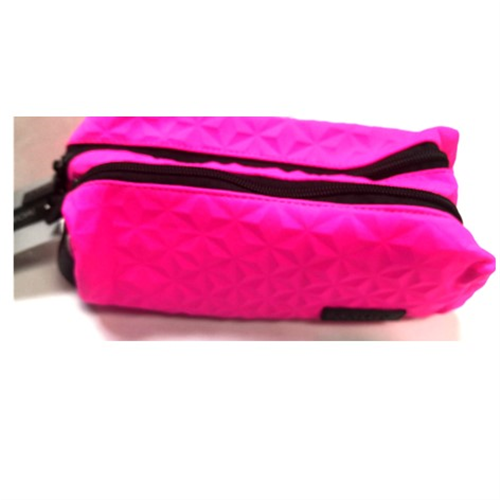 Astuccio 2 zip realizzato in poliestere alta densità, con etichetta e tirazip in metallo cromato con logo forato e inciso. Dimensioni: 22 x 10 x 10 cm.