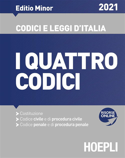 In versione tascabile la panoramica completa della normativa quadro e di tutte le novità che sono intervenute nel corpus dei quattro codici fondamentali (Codice civile, Codice penale, Codice di procedura civile e Codice di procedura penale). Per il suo formato ridotto e il suo contenuto il volume costituisce quindi uno strumento di agile consultazione per studenti o professionisti di ambito giuridico che vogliano reperire con rapidità le norme codicistiche vigenti.