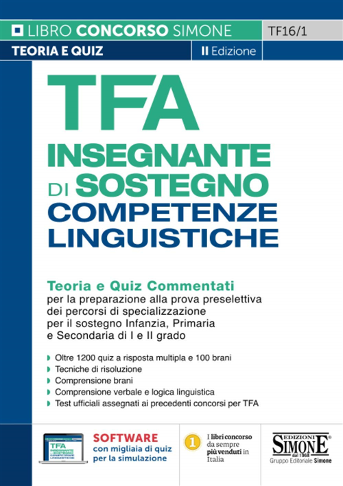 Questo manuale «TFA insegnante di sostegno – Competenze linguistiche» si rivolge a tutti coloro che intendono sostenere le prove per l’accesso ai corsi di specializzazione per le attività di sostegno nella scuola dell’infanzia, nella scuola primaria, nella scuola secondaria di I e II grado.