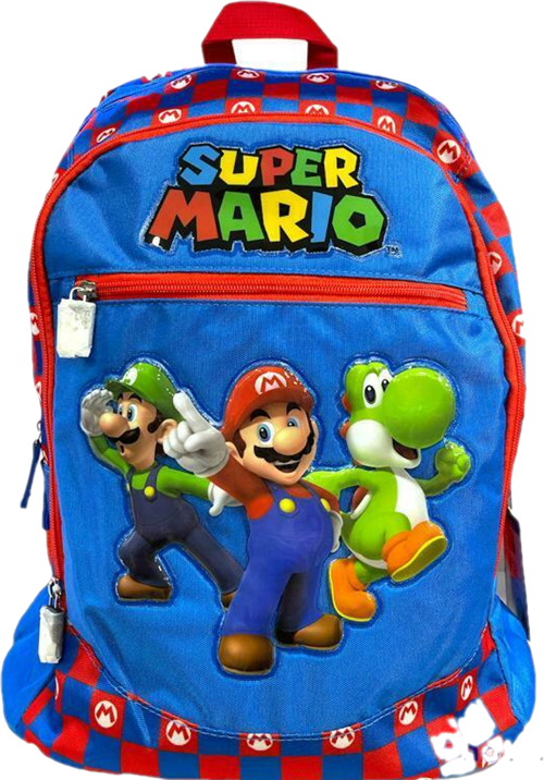 Super Mario Bros zaino Scuola Organizzato. Zaino Super Mario con due ampi scomparti principali all’interno una tasca con zip perfetti per organizzare al meglio il materiale scolastico e facilmente accessibili grazie alle chiusura a zip con doppio cursore bidirezionali personalizzato. Dotato inoltre di una grande tasca frontale con chiusura zip, ideale per gli oggetti più piccoli. Il fondo integrato e imbottiti, il retro preformato e gli spallacci regolabili sono imbottiti e rivestiti in rete traspirante per garantire il massimo confort.