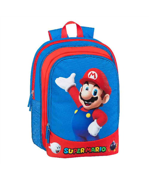 Zaino asilo Super Mario, colori rosso e blu con l’immagine di Super Mario sul davanti.