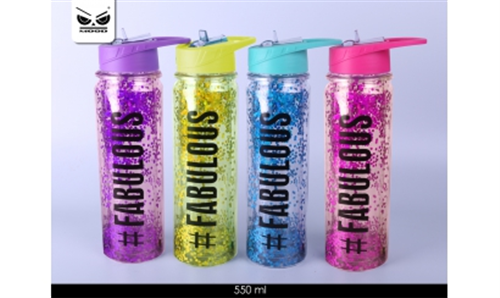 550 ML. Borraccia in plastica con doppia parete. I glitter rendono la borraccia divertente e giovanile. Con manico per un pratico trasporto e cannuccia estraibile. Prodotto certificato!