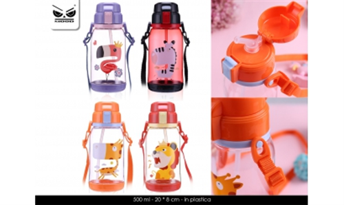 500 ml - 20x8 cm - in plastica, il coperchio è facile da aprire, chiudere e impugnare. Cannuccia antigoccia, lavabile in lavastoviglie (solo sulla gruglia superiore). Senza BPA.