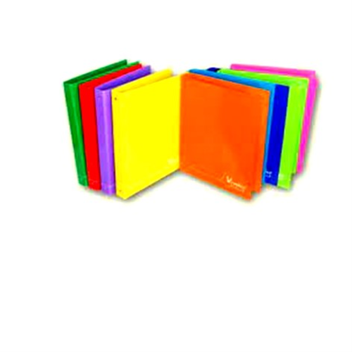 Con 4 anelli Ø 25. Formato 190 x 220 mm (A5), in cartone accoppiato e rivestito da 1,8 mm, plastificata lucida. Disponibile in 9 colori vivaci assortiti, interno stampato e personalizzabile, resistente ai liquidi, superficie scrivibile.