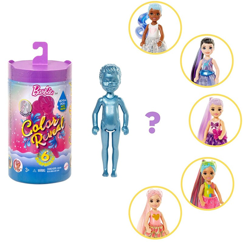 Con 6 sorprese in 1 confezione, le bambole Chelsea Barbie Color Reveal offrono ogni genere di divertimento. Ogni volta che apri un tubo Barbie Color Reveal, scopri 6 sorprese all'interno, tra cui una bambola misteriosa! Età 3+