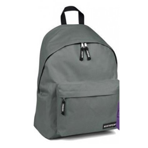 Zaino in tessuto rinforzato. Con cerniera e tasca frontale. Dorso imbottito. Dimensioni: 30 x 43 x 15 cm.