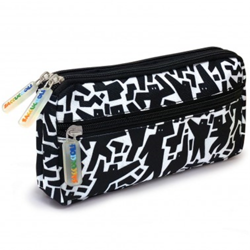 Formato: 22 x 12 x 6 cm. Materiale: poliestere extra strong. Assortito in 3 fantasie. 3 zip.