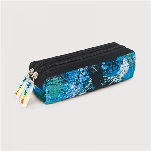 Astuccio a 2 zip dalla forma quadrata, con scomparto centrale e tasca laterale. Perfetto per tenere in ordine penne, matite e accessori di cancelleria. Linea: GRAFFITI.