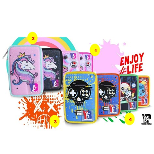 Astuccio Ovale Jumbo Young People 2021, con interno organizzato. Ampio comparto con cerniera, con tira zip in metallo. All'interno un divisorio con passanti su un lato e tasca con cerniera. Misure: 22x5x7 cm circa Tessuto: Poliestere.