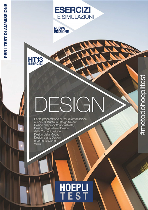 #metodohoeplitest. Una preparazione teorica e pratica per affrontare al meglio la prova di ammissione all'università. Questa edizione dell'eserciziario per la preparazione al test di accesso al corso di laurea in Design, con oltre 1000 esercizi, dai più semplici ai più difficili, segue una suddivisione delle domande per argomento d'esame per favorire un'esercitazione mirata ed efficace. Gli esercizi proposti seguono lo stesso indice del manuale teorico collegato, consentendo così un immediato riscontro della preparazione. Ciascun esercizio è corredato della risposta corretta e di un commento per conoscere e memorizzare al meglio il metodo di risoluzione del quiz. Completano il volume due simulazioni di test di ammissione utili a verificare la propria preparazione e a familiarizzare con test analoghi a quelli ufficiali.
