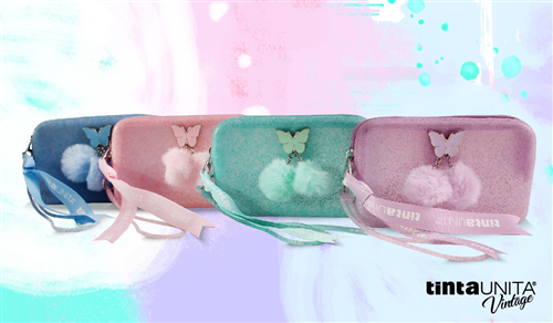 Bustina TintaUnita PoolOver Vintage Primavera 2021 - cod. 50306 - in silicone - 14,5x8,5x2,5cm - con laccio e pon pon in tinta - lilla