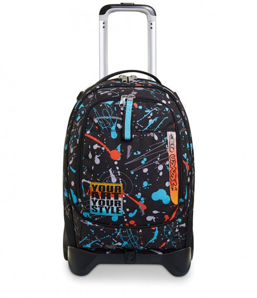 Il Trolley Seven Jack-3WD PERSONAL ART, dotato di un sistema a 3 ruote che agevola la salita dei gradini, è pieno di stile e multiuso. In poche semplici mosse, infatti, da trolley diventa zaino e viceversa. Il carrello ha fondo rinforzato e protezioni angolari, dando stabilità al trolley e protezione al contenuto. Lo sganci e hai uno zaino lavabile, maxi capiente, dotato di tasca frontale e comodo da indossare grazie a schienale imbottito e spallacci imbottiti e traspiranti. Spallacci che, se lo usi come trolley, possono essere a scomparsa o, grazie al CROSSOVER SYSTEM, sollevarsi automaticamente tirando su la resistente doppia barra telescopica con due regolazioni in altezza, evitando che i nastri striscino a terra.