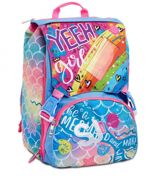 Ciao! Sono lo zaino estensibile SJ Gang OCEANLED GIRL, con dettagli rifrangenti, che ti accompagna a scuola in modo divertente e giocoso! Infatti puoi divertirti ad attivare i LED LUMINOSI INTERMITTENTI che ho sulla pattina e vedere come cambiano colore! Li puoi pure ricaricare col cavo USB incluso. La pattina è removibile perché lo zaino è lavabile. Ho un ampio doppio scomparto, la cui capienza si può facilmente moltiplicare grazie alle zip laterali per poter accogliere e distribuire in modo ottimale anche i carichi più pesanti. Con lo schienale Ergosystem preformato e gli spallacci imbottiti e traspiranti sono comodo da indossare sulle spalle, mentre il fondo integrato fa sì che la mia struttura rimanga inalterata e stabile anche a pieno carico.