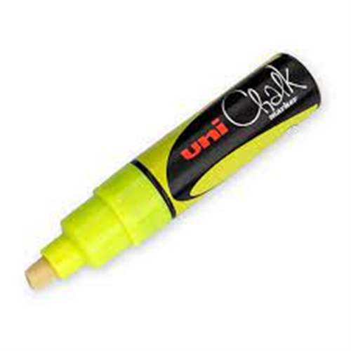 Marker Uni-Clack PWE-8K - a gesso liquido - punta a scalpello media da 8mm - giallo fluo