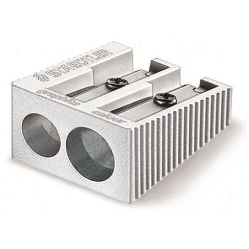 TEMPERAMATITE IN METALLO A 2 FORI. Per matite a fusto normale fino a Ø 8.2 mm e per matite grafite e colorate a fusto grosso fino a Ø 10.2 mm. Guida matita lunga e sicura. Ottima qualità.