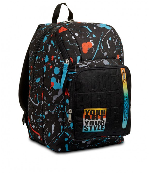 DETTAGLI Lo zaino Seven Point Out PERSONAL ART, curato nei minimi particolari con scritta in rilievo su tasca frontale, ha un doppio scomparto davvero capiente e numerose tasche per mettere tutto quello che ti serve, anche la tua borraccia. Con lo schienale Ergosystem preformato e gli spallacci imbottiti e traspiranti è comodo da indossare sulle spalle, ed avendo il fondo integrato la sua struttura, anche a pieno carico, rimane inalterata garantendo la stabilità del contenuto. Con la pratica zip a U rovesciata, infine hai un accesso diretto al secondo scomparto.
