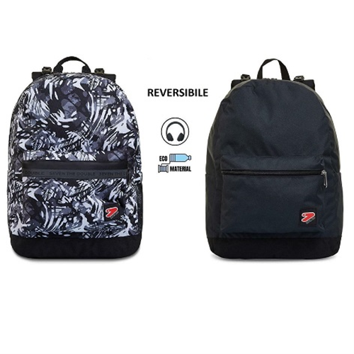Con lo zaino reversibile Seven The Double hai 2 zaini in 1: uno in fantasia, l’altro in tinta unita. Per rigirarlo tutte le volte che vuoi, staccando lo schienale, ti bastano 3 semplici mosse. Lo zaino reversibile è fatto in tessuto di poliestere riciclato ricavato da 29,5 bottiglie in PET da 500 ml, garantendo tutti gli standard qualitativi dei nostri materiali. Entrambi i lati, in fantasia e in tinta unita, hanno una comoda tasca frontale e quello in fantasia ha anche una tasca laterale porta borraccia. Infine lo schienale è imbottito e insieme agli spallacci imbottiti e traspiranti rende lo zaino comodo da indossare sulle spalle.
