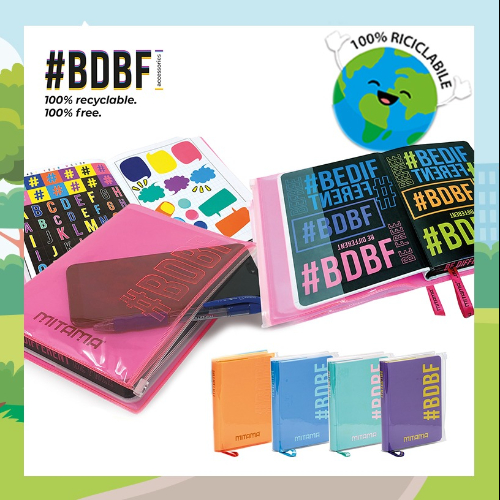 Diario Mitama #BDBF (Be Different Be Free) - pocket 15x19cm - 18 mesi - non datato - dotato di custodia trasparente portatutto - diario bianco con custodia fucsia fluo