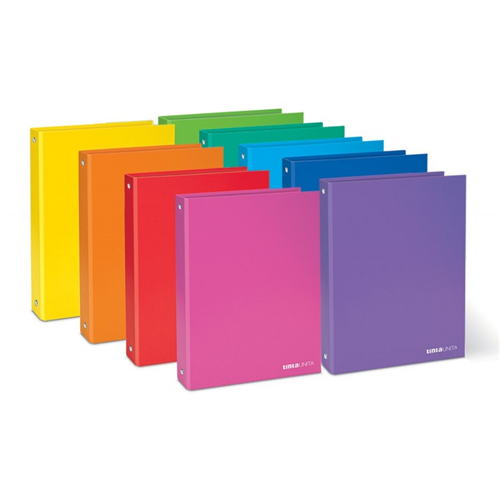 4 anelli, formato 190 x 220 mm (A5), in cartone accoppiato e rivestito con finitura lucida.
