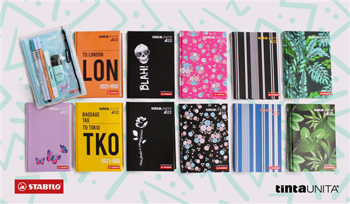 .L'esclusivo diario TintaUNITA in collaborazione con Stabilo è accompagnato da un set di prodotti Stabilo all'interno di una copertina con zip in plastica dove potrai inserire anche il tuo smartphone.