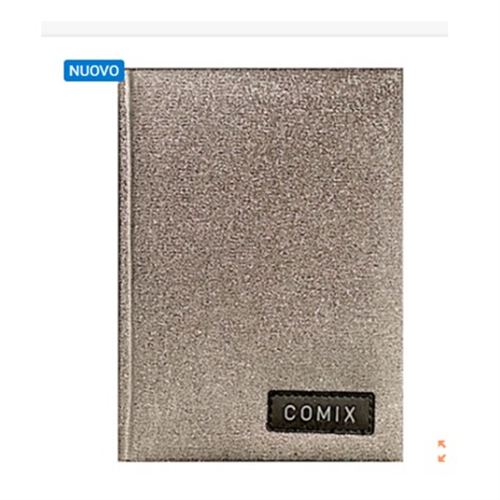 Copertina effetto tessuto glitter e doppio segnapagina bianco con il logo Comix.