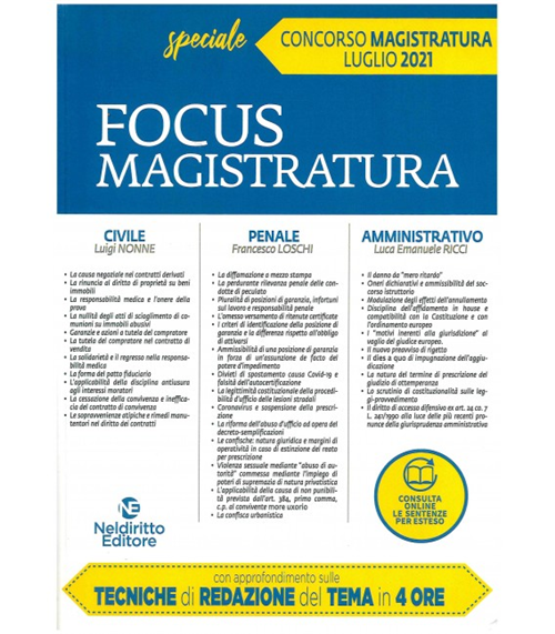 La rivista “Focus” si inserisce nell’ambito di un progetto ideato per tutti coloro che si accingono alla preparazione del concorso per magistrato ordinario e che si concretizza nella pubblicazione di una rivista giuridica con cadenza bimestrale.