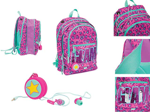 Zaino scuola GoPoP estensibile Glam 21-22 realizzato con tessuti resistenti e di alta qualità e con grafica accattivante a una serie di sorprese con effetto pop-up per regalare ogni giorno una carica di novità. Tasca principale capiente e spaziosa con chiusura a zip, all'interno un altra tasca per mettere gli oggetti più piccoli e altre 2 tasche con chiusura a zip. Quest'anno ascoltare la musica con GoPoP sarà ancor più divertente grazie agli auricolari inclusi nella confezione che potrai atacchare al moschettone in dotazione allo zaino.